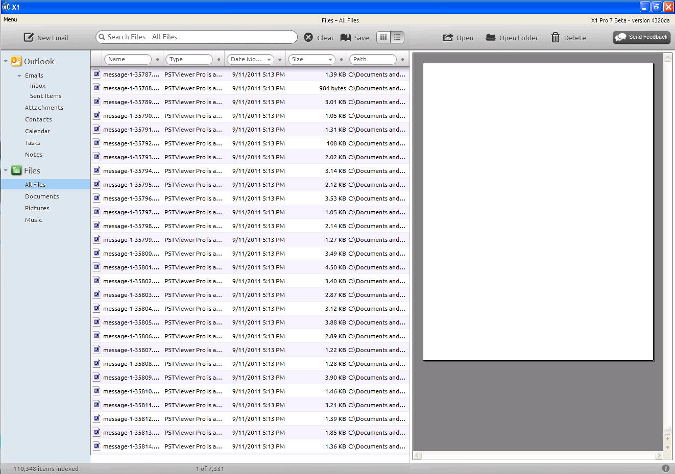 X1 doesn't store emails itself, it just indexes them so you are still dependent on the PST files. I also tried exporting my PST files to EML files and then using X1 to index those, but then it doesn't show stuff like SUBJECT and SENDER in the search results, to it is useful.