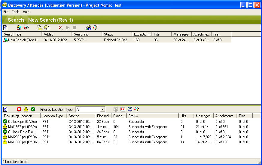 This tool does not index or database your messages, you start each search from scratch by telling it what you want to find and which PST files to look in. Then it scans the files and displays the results. This is slow, but though. It has the option to search inside of the internet message headers, which is very nice.