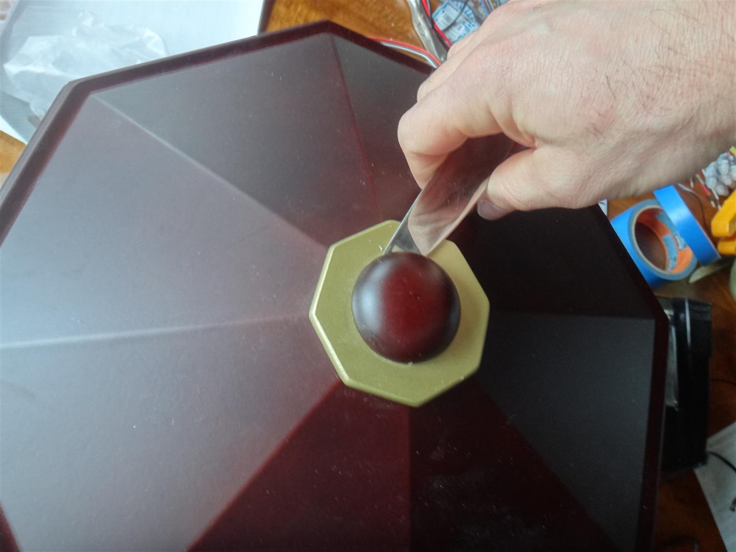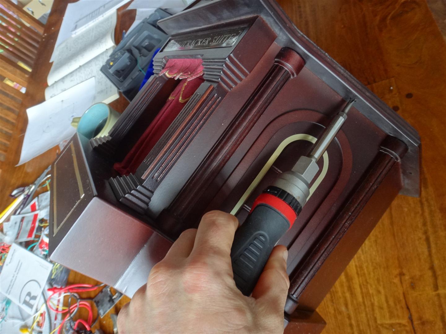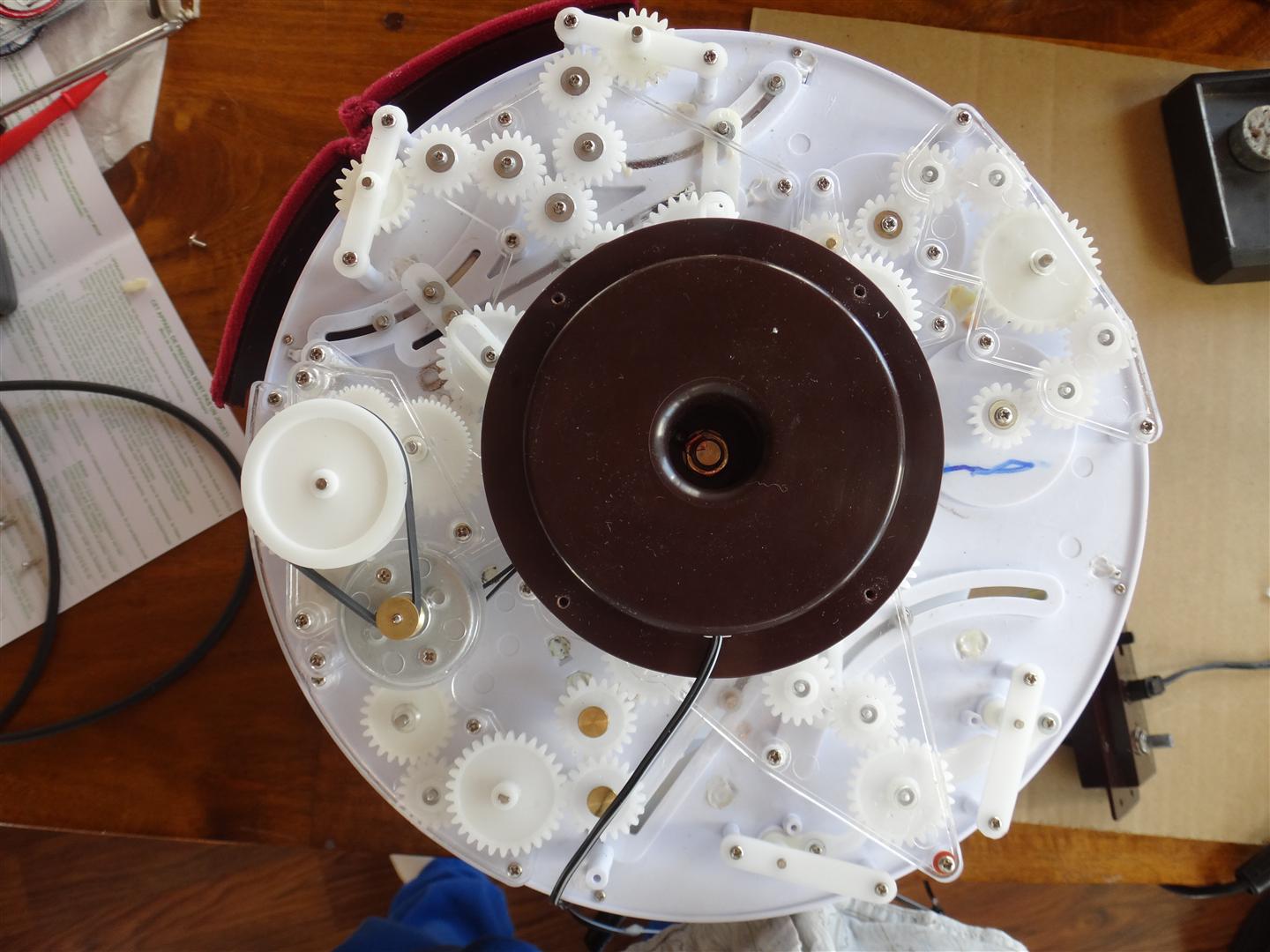 If you need to get to the bottom of the stage, that is harder. You'll need to get down there if the figures aren't turning, or if there is a problem with the power switch/plug or volume control knob.