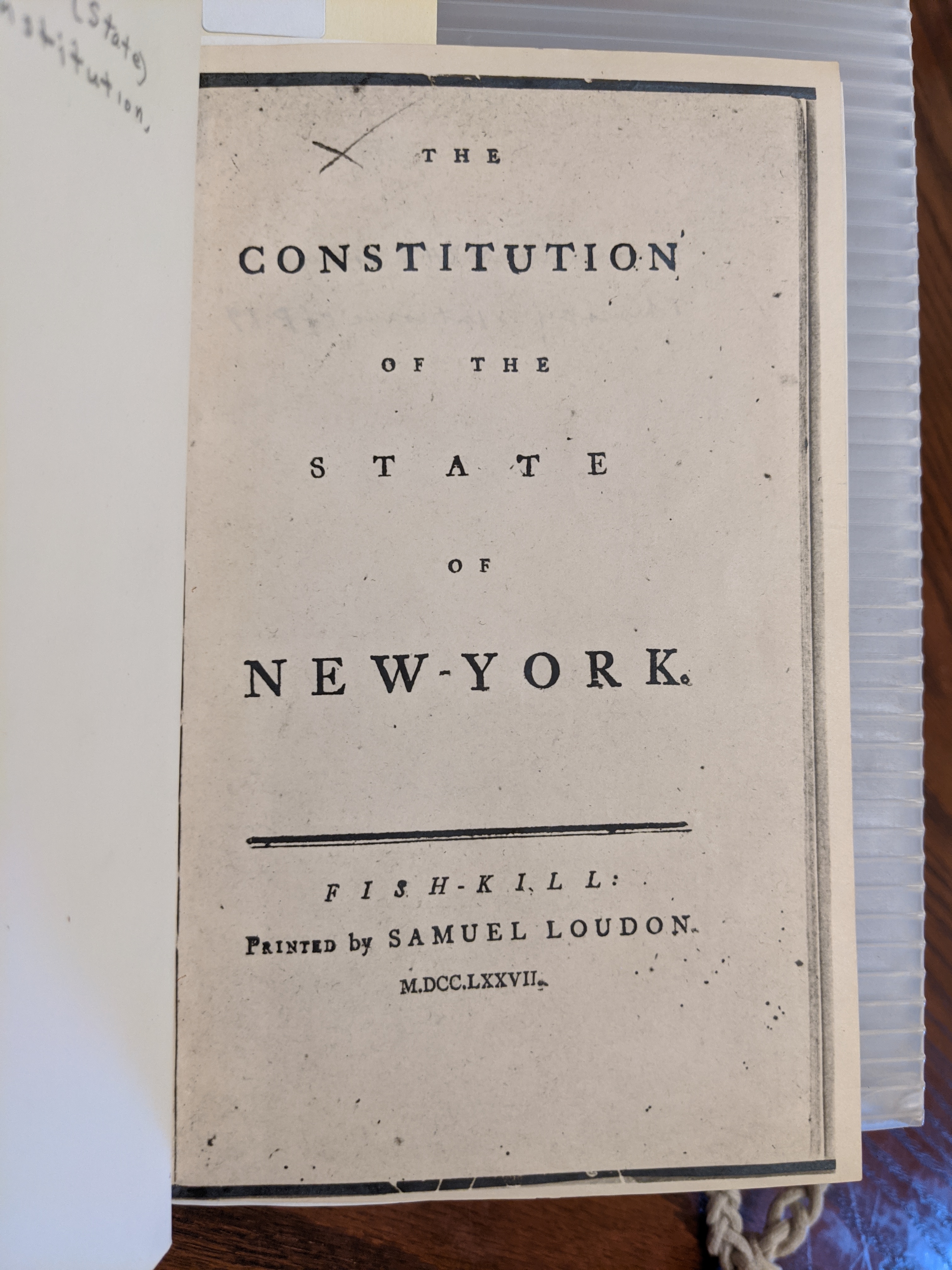 The Constitution of the State of New York, published 1777 in Fishkill New York by Samuel Loudon